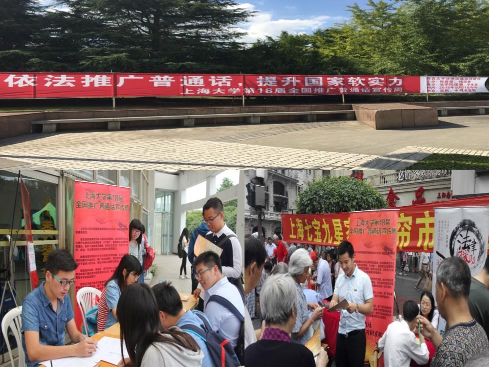2015年9月14日—9月20日,是ac米兰官网中文网站第18届推广普通话宣传周,图书馆前广场印有本次活动主题“依法推广普通话,提升国家软实力”的横幅格外醒目。9月14日中午,由校语委、校团委主办,法学院团委、学生会承办的语言文字法律法规宣传活动在校本部水秀、益新食堂门前分别举行,活动的目的是向广大师生宣传普通话的重要性和我国的语言文字法律法规。