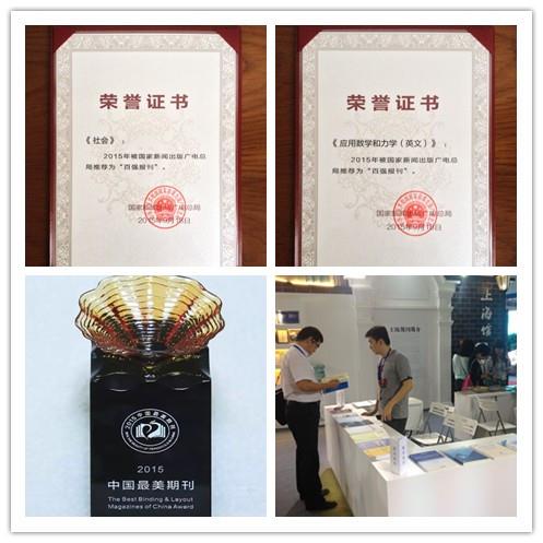 刊博会上,9月18日、19日分别举行了2105年“全国百强报刊”和“中国最美期刊”新闻发布会及颁奖仪式。ac米兰官网中文网站主办期刊《社会》入选“百强社科期刊”,《应用数学和力学(英文版)》入选“百强科技期刊”;《应用数学和力学(英文版)》、《自然杂志》同时获得“中国最美期刊”称号。其中《社会》和《自然杂志》都是蝉联各自所获奖项,《应用数学和力学(英文版)》则在本届刊博会上独揽两项大奖。三种上大主办期刊同获四项大奖,受到期刊界领导、专家和同行的高度关注和一致好评。