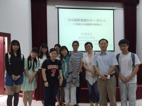 9月18日,外国语学院日语系老师带领研究生参加了在上海理工大学举行的中日翻译交流会。来自东京学艺大学的松冈荣志教授做了一场题为《中日翻译实践的关键》的讲座。松冈教授还兼任日中笔译文化教育协会名誉会长、北京师范大学、华东师范大学客座教授等,并一直致力于中国古典文学的研究和翻译。