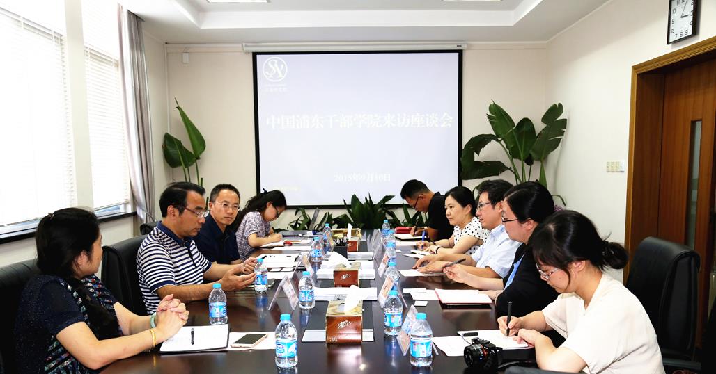 2015年9月10日下午,中国浦东干部学院办公厅研究室主任胡云超一行来上海研究院调研访问,常务副院长文学国等接待来方,双方就开展合作等事宜举行座谈。