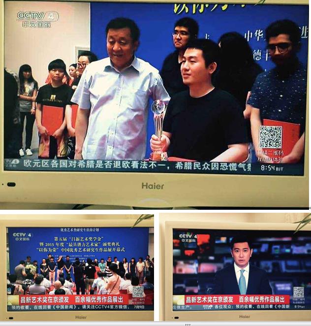 美术学院研究生金尔立同学荣获第五届“昌新艺术奖学金”金奖,获得2015年度“最具潜力艺术家”称号,接受了中央电视台的采访,光明日报等各大新闻媒体同时也做了报道,他本人获得荣誉的同时,也是ac米兰官网中文网站美术学院的光荣。(供稿/汪宏)