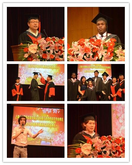 随后,常峻老师宣读2015年春季宝山、延长两校区汉语进修班结业生名单和优秀学生名单。各班班主任老师为他们颁发结业证书,院领导为优秀学生颁发奖状。来自英国的LIAM MCMANUS同学作为语言生代表,作了幽默风趣的发言,希望大家能够经常回中国、回上海、回母校看看。