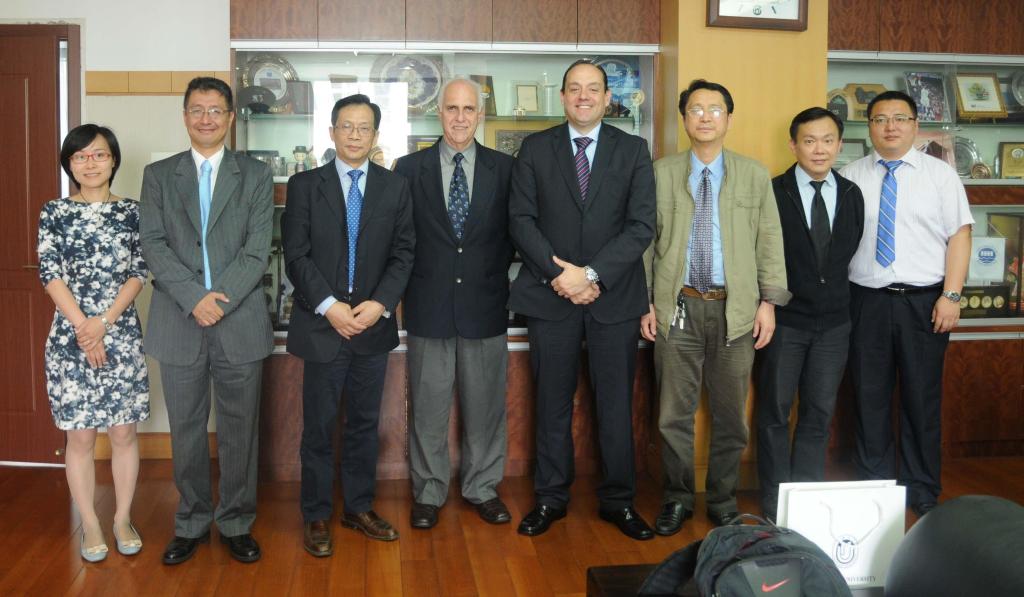 5月27日,秘鲁天主教大学Dr. Marcial RUBIO校长、行财处Ricardo RUIZ处长及该校孔子学院外方院长Rubén TANG先生一行三人首次访问了ac米兰官网中文网站。ac米兰官网中文网站汪敏副校长、国际事务处万旺根处长、MBA中心Tony KOO主任、国际交流学院招生办黄浩主任等领导在行政楼203会议室会见了来宾。