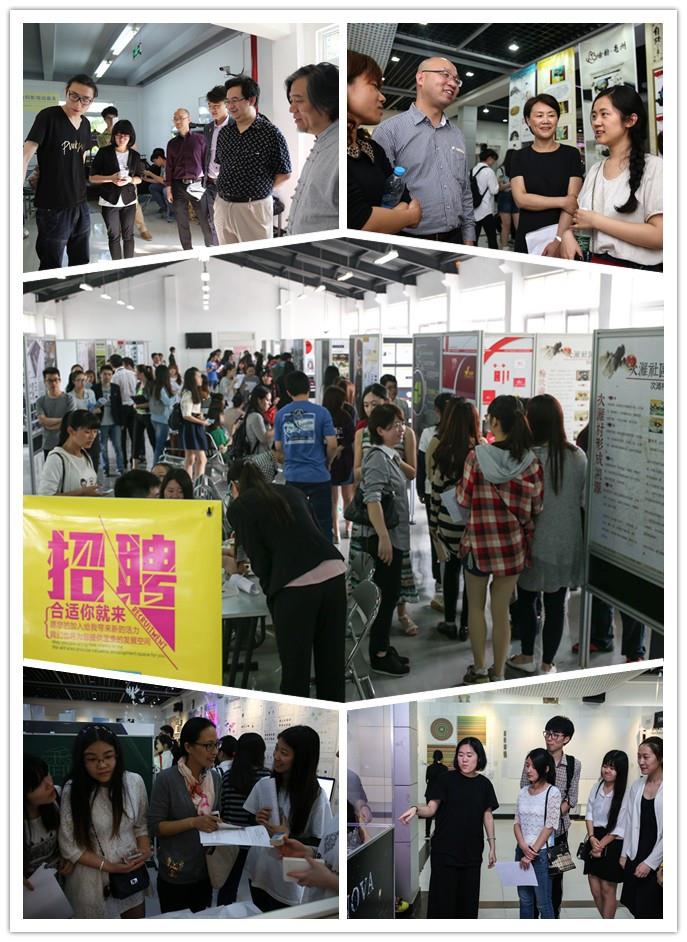 5月19日和5月21日下午,数码艺术学院的各展厅内济济一堂,万头攒动。一百二十几家的企业家朋友和人事经理们,在毕业生“四年磨一剑”精心设计的毕业作品前,时而驻足欣赏,时而倾心洽谈,引来了来自上海兄弟院校的“围观”、“点赞”,也收获了学院全体学生的“热捧”、“热议”。原来这是数码艺术学院“2015年毕业设计展周”(5月18日——5月24日)重磅推出的创新型活动——就业与实习招聘会。