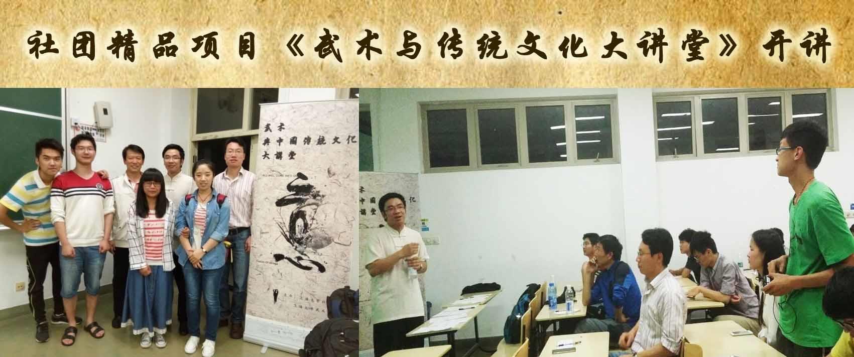 为弘扬中华传统文化,拓宽大学生课外视野,鼓励专业类社团在大学生课外培养中发挥作用,由社团联合会与武术协会联合推出的“武术与传统文化讲堂”系列讲座正式开讲,此项目获得了校团委和体育学院的全程支持。