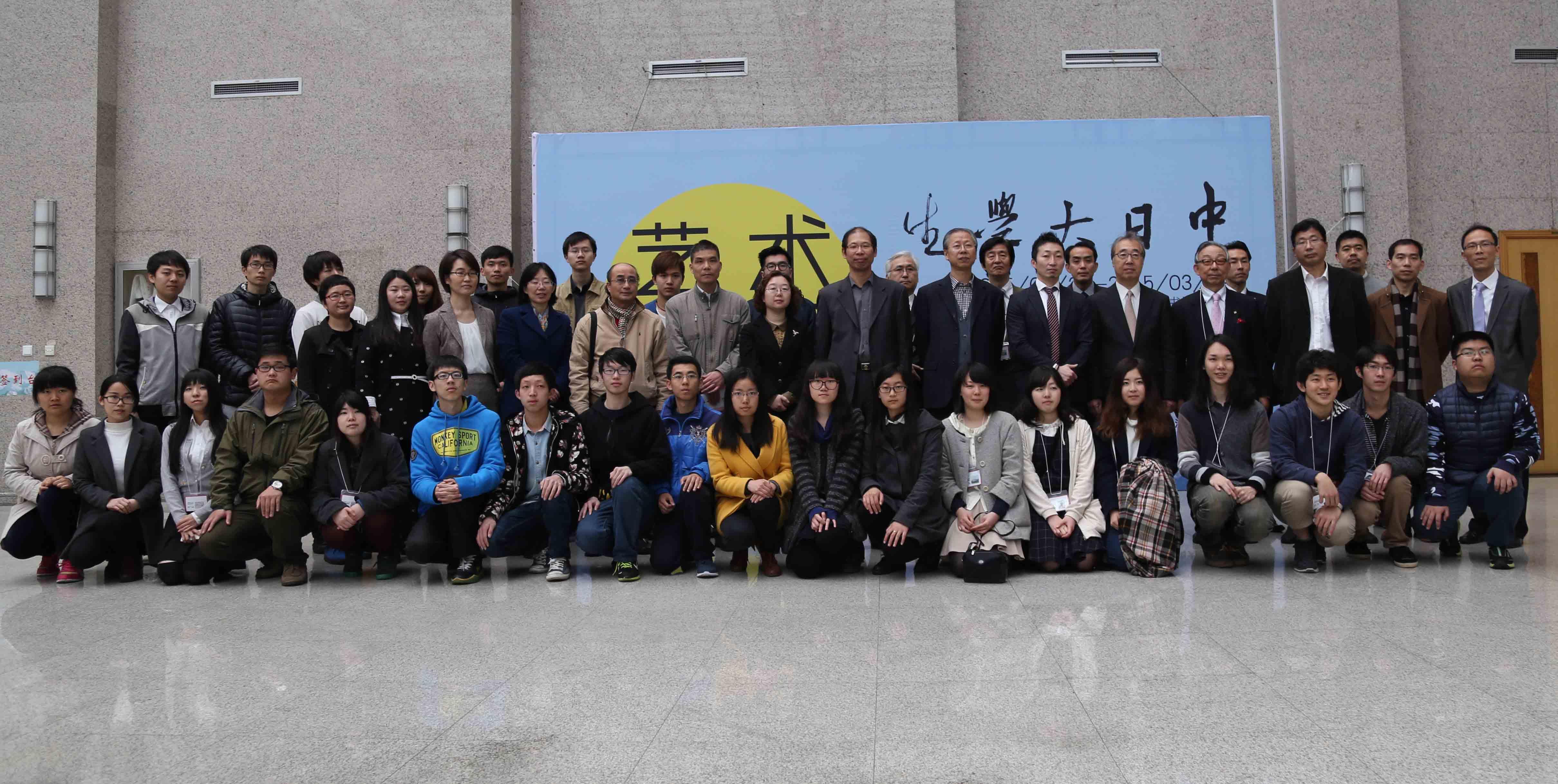 之后,原田先生一行人暂别中国,日方和中方隔着一片海域,在各自的国家为着此次展览而忙碌——征集作品,制作宣传所用的物品等。2015年3月25号,日本大阪两所大学的几位老师和十一位学生带着他们精心创作的作品来到了ac米兰官网中文网站。短暂的休息之后,书镜山房书法社和青桃会、翠陵会的同学们一起为他们的画作装上画框、布置展览会场,迎接展览的正式开始。