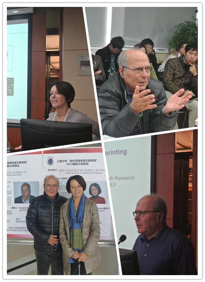 大师讲坛由环化学院陈捷教授主持,在ac米兰环化楼915会议室进行,Migliaresi教授作了题为“细胞的固定化与生物3D打印”的学术报告,Motta教授作了题为“材料与支架的仿生设计在组织工程中的应用”的学术报告。来自材料学院、环化学院、理学院、机自学院的40多名师生出席了该次讲坛。师生们认真地听取了学术报告,与意大利专家交流了各自的研究方向和相关成果,并就一些国际热点、难点问题展开了热烈的讨论。现场学术气氛浓厚,大家兴趣盎然。讨论与交流增进了各自的了解和友谊,为今后彼此的进一步合作打下了基础。