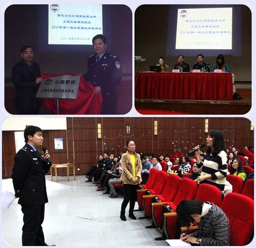 开班典礼上王育文教导员与何金伟副处长为公民警校嘉定校区办学点揭牌,卫静芬副书记和王育文教导员介绍了开展培训的初衷、高校安全稳定工作的重要性及本期培训的主要内容,并寄予了对学员们的期待。