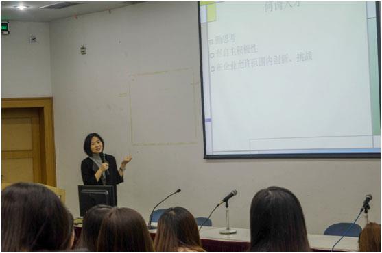 讲座中,姚女士对如何给自己定位、人才招聘市场现状、何谓人才、应聘时的注意事项等问题为同学们进行了深入而详细的解答。在近两个小时的讲座中,姚女士从自己的留学经历讲到当下在招聘工作中出现的问题,期间没有喝一口水,可谓专注而敬业!
