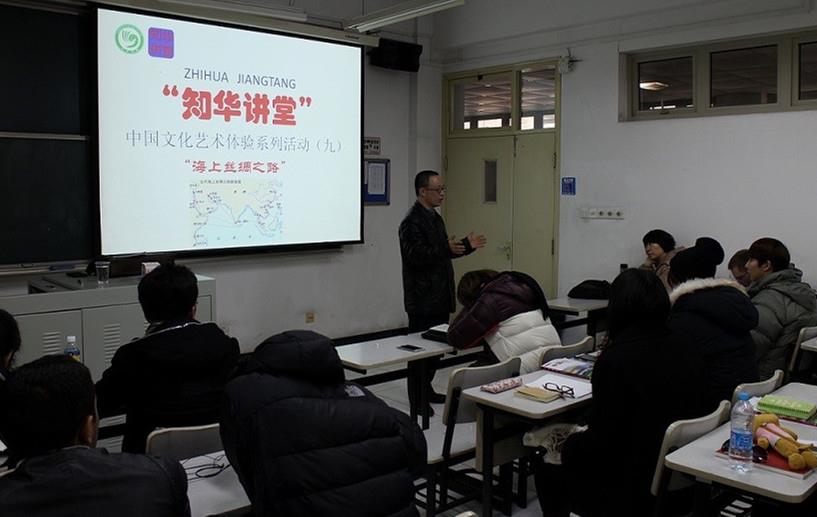 1月8日下午,ac米兰官网中文网站孔子学院奖学金中国文化艺术体验系列活动——“知华讲堂”第九讲“海上丝绸之路”在D208教室举行。毕业于复旦大学中文系、现任《ac米兰官网中文网站学报(社会科学版)》编辑部主任的李孝弟博士作就“海上丝绸之路”的历史、演变和发展做专题报告,并与来自各国的留学生交流互动。本期“知华讲堂”由杨静副院长主持。