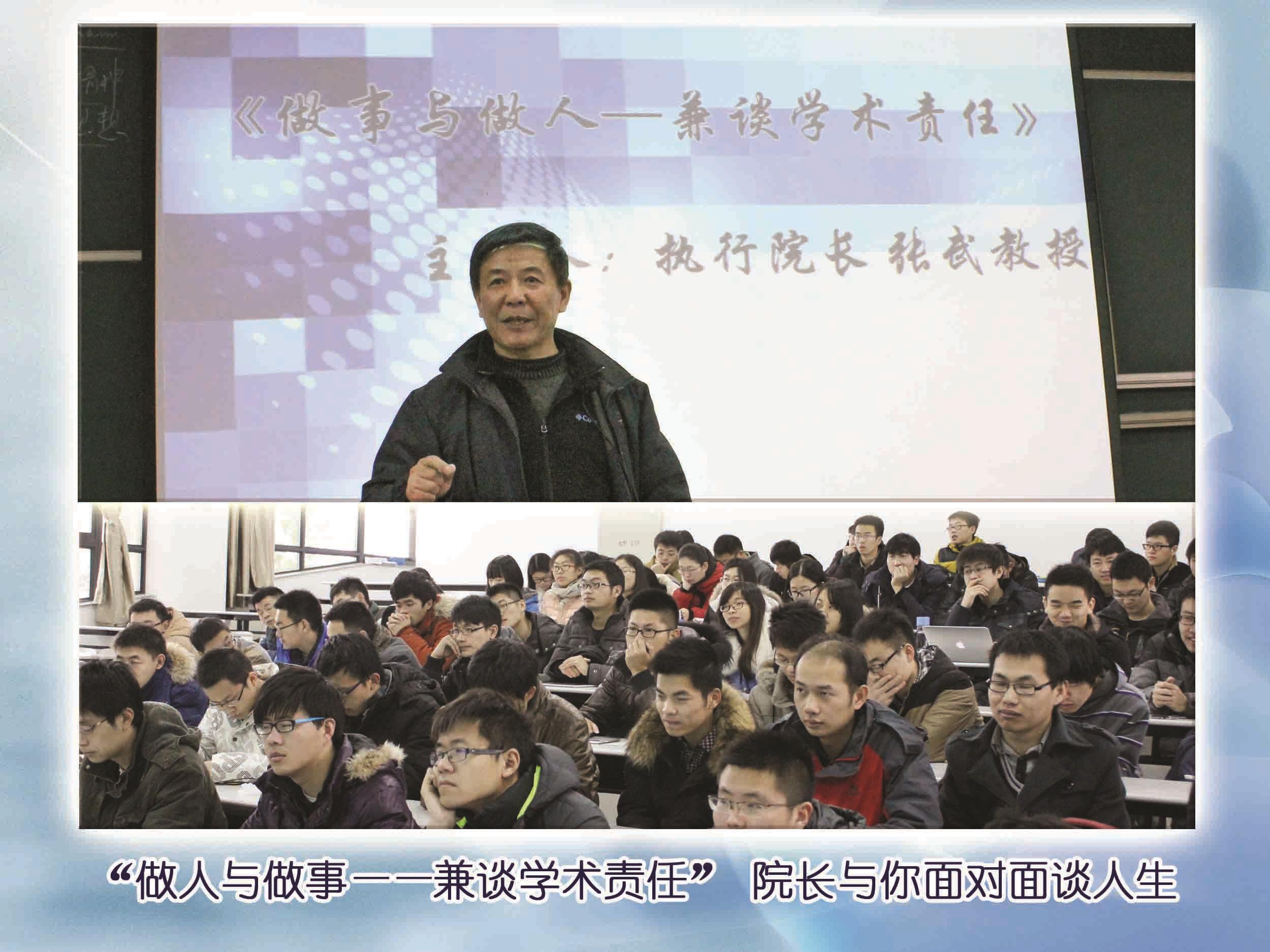 本次论坛张院长以“做人与做事——兼谈学术责任”为主题,结合自己丰富的人生经验和智慧与广大研究生们面对面畅聊人生。首先,张院长认为“一代人有一代人的责任”,通过回顾自己成长过程中社会历史的变迁,指出作为青年学生应该将自身成长和发展同国家的前途命运紧密相连,承担起推动国家和民族发展的重任。随后从“教育”、“学术”、“做人”这三个角度,和学生进行了深入的探讨。在“教育”方面,张院长认为中国教育几十年来已经取得了巨大的进步,尤其是基础设施等条件上得到了很大的改善,但在育人上仍然有待提高,希望学生思考“为何现在的教育培养不出大师?”这一钱学森之问,秉承钱伟长校长的教育思想,为成为全面发展的人而努力。在“学术”方面,张院长为学生介绍了陈寅恪等大师的治学经历,希望学生做学问能有“独立之精神,自由之思想”。同时,结合小保方晴子学术造假、张益唐在孪生素数对上的发现正反举例,指出做学问要诚实,要有目标和信念,坚决杜绝学术造假和学术腐败。在“做人”方面,张院长认为每个人的环境和背景虽然不同,但仍有一些做人的准则是应该被大家学习的,他特别欣赏中国的古训比如“勿以恶小而为之,勿以善小而不为”、“达则兼济天下,穷则独善其身”等等,认为学生能从中习得一些做人的道理。本次论坛随着张院长和同学们深入、热烈的交流讨论而进入尾声。