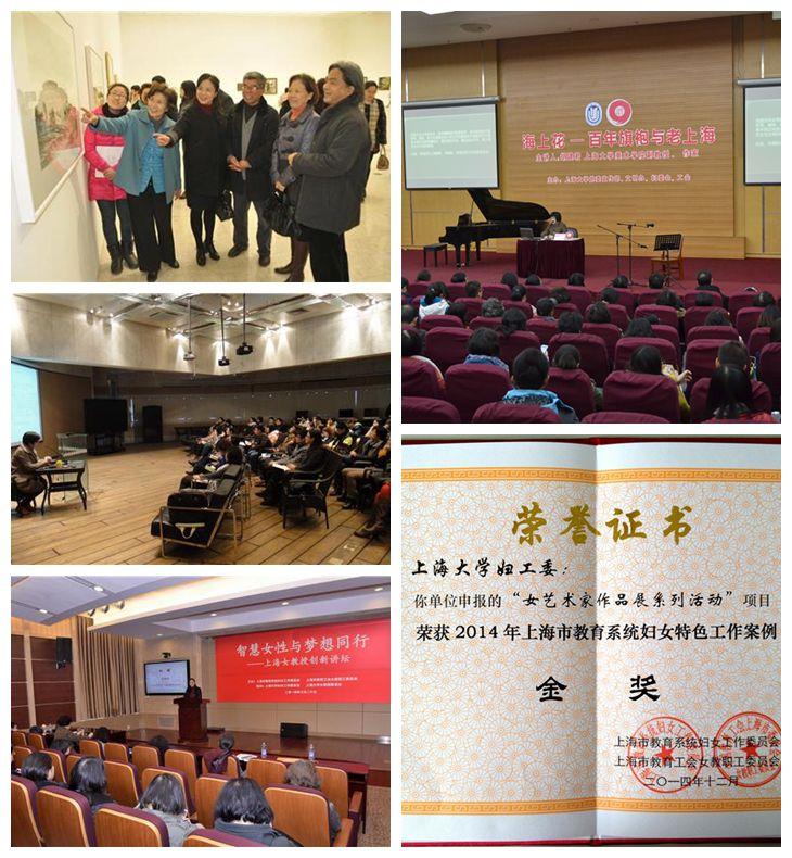 校妇委会在2014年以“促进女性发展、提升女性素质、展示女性风采,促进女性成才”为宗旨,以“花”为媒接连举办了“你若盛开”——2014ac米兰官网中文网站女艺术家作品展、出版展览同名画册、“艺术与慢生活”小型研讨会、“艺术与慢生活——从古董银饰说起”专题艺术讲座、“智慧女性与梦想同行”上海女教授创新讲坛、“海上花”——百年旗袍与老上海专题讲座等“女人花”系列艺术活动。活动受到了校内外的多方关注,被上海新闻网、上海日报英文版、上海女性网等多家媒体采访报道,新民晚报还做了图文并茂的一个专版介绍,扩大了ac米兰女艺术家的社会影响力。