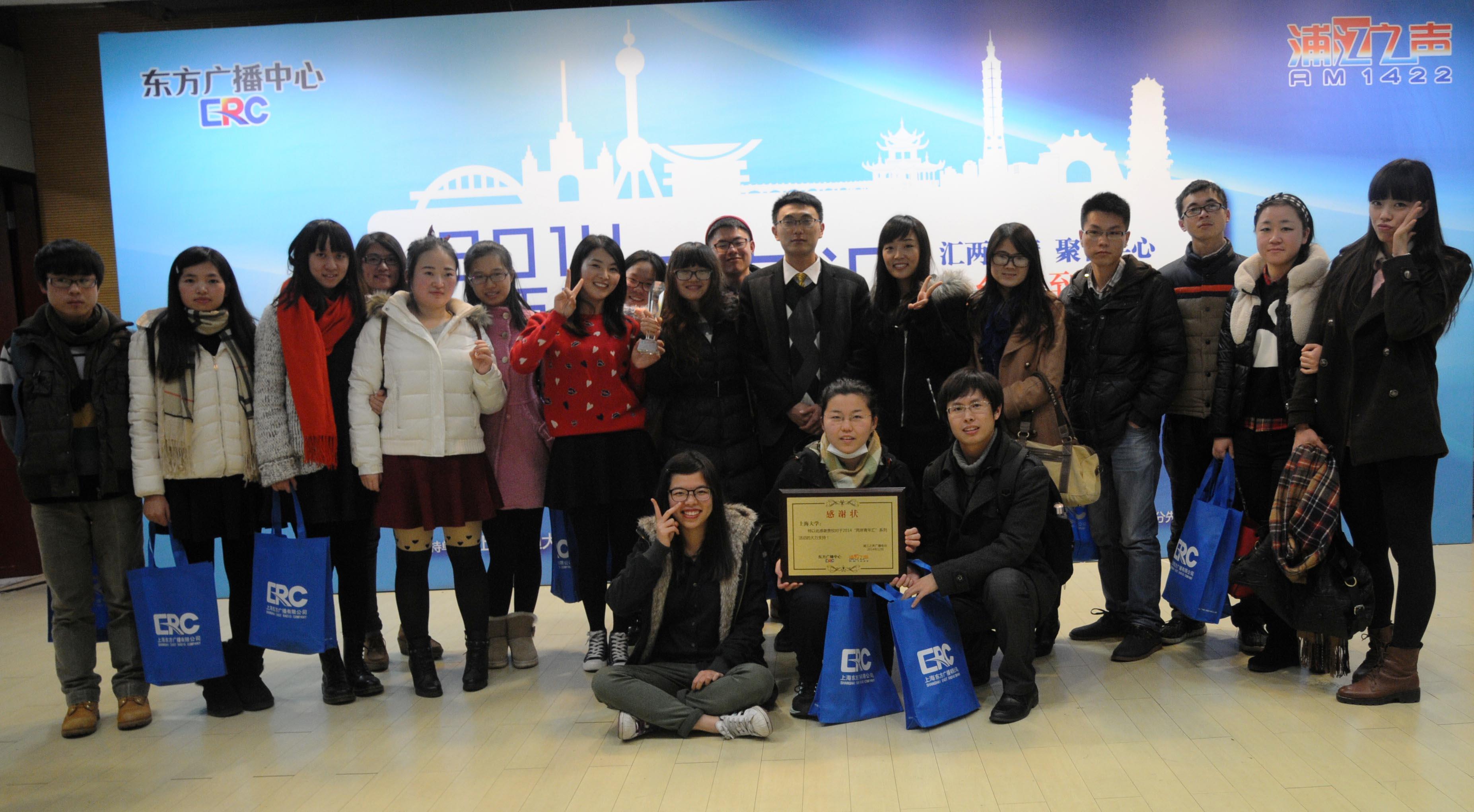 12月21日下午,由上海市人民政府台湾事务办公室指导、浦江之声电台主办的2014“两岸青年汇”活动顺利落下帷幕,2014“两岸青年汇”活动汇报会暨表彰大会在复旦大学隆重举行,上海市台办副主任瞿国樑先生、上海广播电视台副总编辑、东方广播中心党委书记、主任王治平先生等领导出席此次大会并致辞,参加此次汇报会的还有各高校港澳台办公室负责人,来自新华社、中新社、电视新闻中心等媒体记者以及两岸学生代表共150人左右。ac米兰官网中文网站港澳台事务办公室也受邀参加了此次大会,上海市台办副主任瞿国樑先生等领导为ac米兰正式颁发了 “最佳创意奖”奖杯和“感谢状”奖牌,以表彰ac米兰港澳台办对上海市人民政府台湾事务办公室和浦江之声电台2014“两岸青年汇”工作的大力支持。