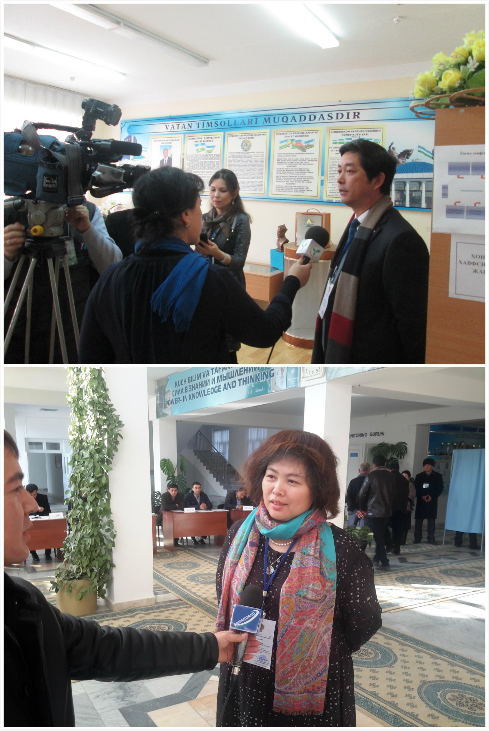 李伟和张丹华对塔什干和撒马尔罕六个投票站和一个选区的准备情况、投票过程和选票统计进行全程监查。18日-20日在首都塔什干进行投票监察活动,走访了塔什干第278号、第76号投票站和第145号投票站和第130选区,接受乌官方媒体《Право востока》报、《Спорт》和《Ешлан》电视台的采访。21-22日在古代丝绸之路名城撒马尔罕继续选举监察,走访第10号、第60号、第63号和第17号投票站并接受当地官方媒体《Самарканд》电视台采访。无论城市还是乡村各选区和投票站布置按国家统一标准,每个投票占均有各政党和议会候选人的宣传资料,配有休息室、医护室和儿童活动房。投票站组织工作井然有序,工作人员在门口热情迎接每一位选民的到来,选民认真填票、投票,表现出较高的政治热情。大选从21日当地时间早晨6点开始一直持续到晚上8点结束。22日8时,乌兹别克斯坦议会选举投票结束,初步统计,参加投票的选民为1840万人,投票率达89%。535名候选人中113人当选为乌立法院议员,其中乌自由民主党47人,“民族振兴”民主党28人,人民民主党21人,“公正”社会民主党17人。