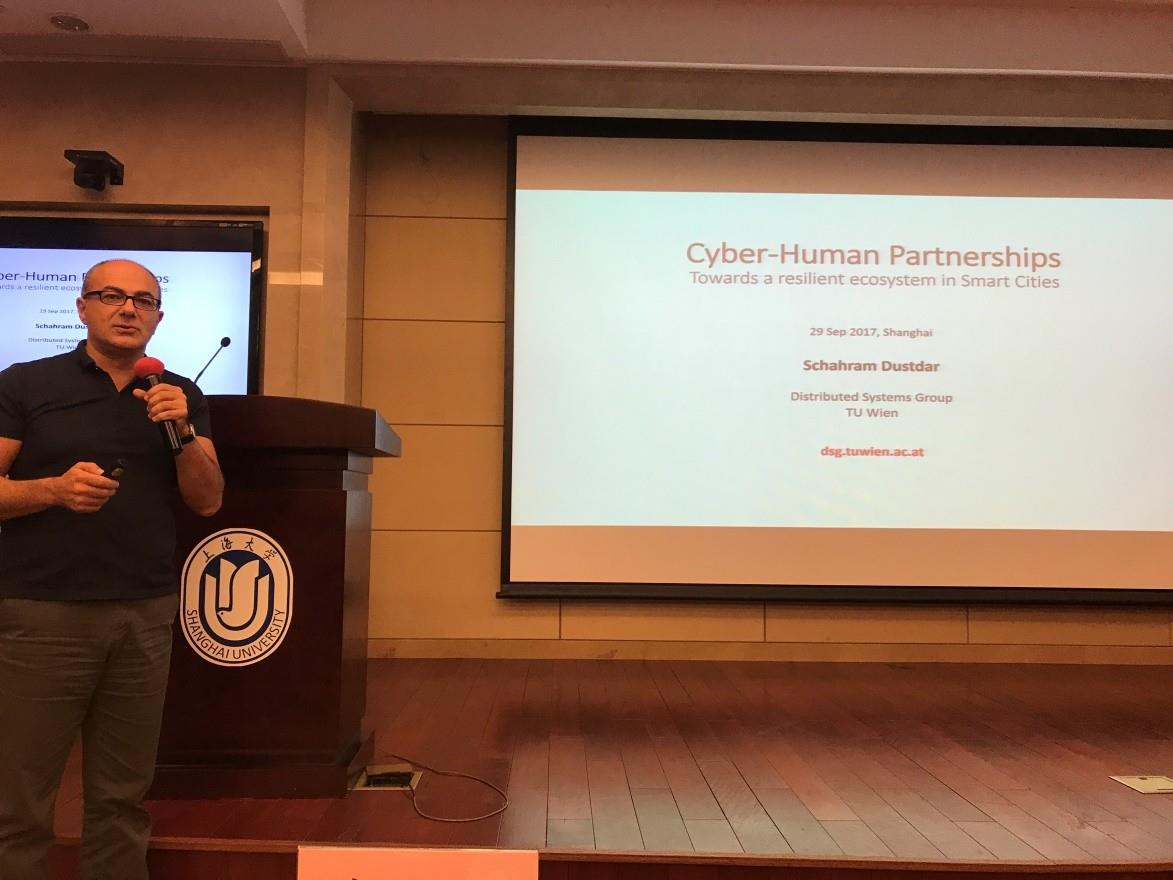 9月29日下午,ac米兰官网中文网站“海外高端专家引智专项”国际大师讲坛(十一)在宝山校区乐乎新楼学海厅正式开讲。本次主讲专家为欧洲研究院院士、ACM杰出科学家、IEEE Fellow、维也纳科技大学的Schahram Dustdar教授,为全校师生奉献了一场题为“Cyber-Human Partnerships – Towards a Resilient Ecosystem in Smart Cities”(网络与人类的伙伴关系-智慧城市中的弹性生态系统)的精彩讲座。讲座由计算机工程与科学学院的冷拓老师主持,来自ac米兰计算机、经济、管理学院、复旦、交大以及业界众多相关科技公司如蚂蚁金服、海航集团、中国银联等代表,约120名师生参加了本次讲座。 Schahram Dustdar教授与大家一起探讨了未来十年最为相关的挑战之一:在考虑现代云计算、物联网(IoT)与大数据的基础上,如何将物联网与软件、人员和流程相结合。他以独特而深入的视角揭开了这个问题的崭新一面,并提出我们要如何将人群、软件服务和事物与数据结合在一起,形成一个新的弹性生态系统,进而对该系统以弹性的方式大规模进行建模、编程和部署。 Schahram Dustdar教授特别强调了弹性与生态系统这两个概念。他所建立并介绍的这种新颖的范式将对我们如何查看、构建、设计及部署超大规模分布式系统产生了重大影响,并为驱动“智慧城市”的价值体系建设奠定基础。在他生动的讲座中,在座师生都表示对技术与社会的结合有了新的认识,从宏观层面对智慧城市的概念有了更清晰的定位和了解。 最后,Schahram Dustdar教授与在座听众展开了有趣的互动,针对大家提出的如何定义智能物联网中价值与信任的问题做了巧妙风趣的回答,在座师生都觉得收获满满。 Schahram Dustdar,欧洲研究院院士、维也纳科技大学计算机科学系的教授,也是该校分布式系统团队的负责人。2004年至2010年,任荷兰格罗宁根大学计算科学系的信息系统荣誉教授。2016年12月至2017年1月,任西班牙塞维利亚大学访问教授, 2017年1月至6月间担任加州大学伯克利分校的客座教授。他是IEEE Transactions on the Cloud,IEEE Transactions on Services Computing ACM Transactions on the Web,ACM Transactions on Internet Technology以及IEEE Internet Computing和IEEE Computer的编委会的副主编,他还是Springer出版的Computing刊物的主编,曾荣获ACM杰出科学家(2009年)、IBM教授奖(2012年)和IEEE Fellow (2016年) 。 国际事务处 计算机工程与科学学院 |
