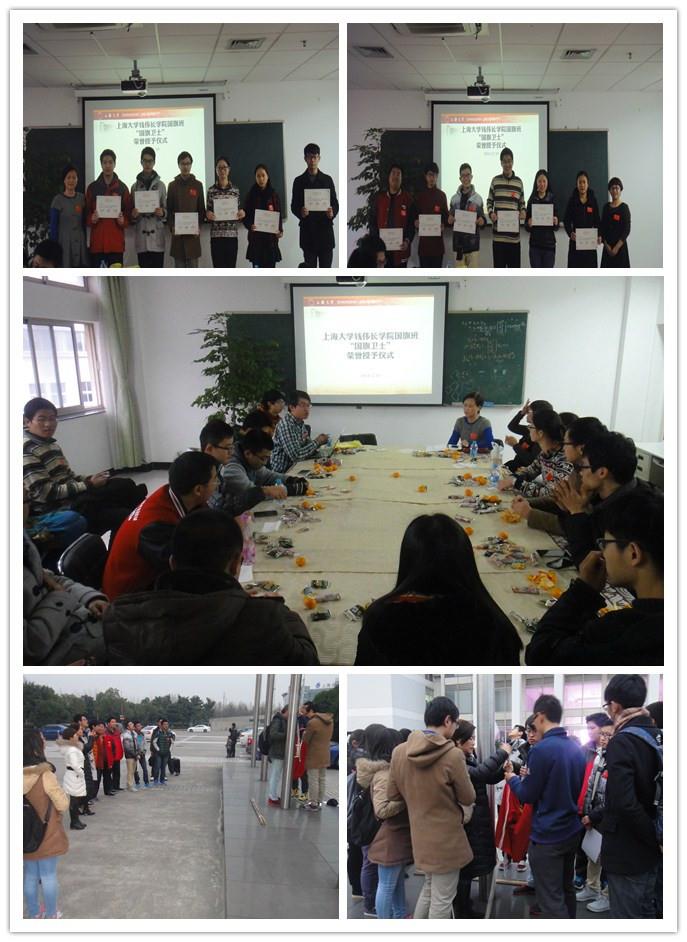 12月19日下午4:00,钱伟长学院国旗班“国旗卫士”荣誉授予仪式在校本部D507室成功举行。钱伟长学院国旗班20余名同学参加了此次荣誉授予仪式。授予仪式由钱伟长学院兼职辅导员李骥主持,钱伟长学院直属党总支副书记徐晓夏和总支委员阮杜娟出席授予仪式。 授予仪式上,首先国旗班同学学习了《国旗法》,明确了身为“国旗卫士”,了解和遵守《国旗法》的重要性。随后,根据ac米兰官网中文网站的实际情况,李骥针对国旗升降的注意事项进行了一一讲解,提醒同学们注意国旗升降的时间、着装、交接等问题。在聆听讲解的同时,同学们也积极地记录下老师强调的事项,并提出了自己困惑的问题,得到了老师的解答。荣誉授予仪式是整个仪式最重要的部分,钱伟长学院“国旗班”名单正式公布,徐晓夏和阮杜娟为国旗班同学颁发了荣誉证书,授予国旗班全体同学“国旗卫士”荣誉称号。最后,老师与同学们一同前往行政楼前国旗下,现场演示和学习了升降国旗,为授予仪式画上了圆满的句号。 钱伟长学院自2007年开始承担ac米兰官网中文网站国旗升降的神圣使命。7年以来除寒暑假外的每天,同学们轮值负责行政楼前国旗升降。身为ac米兰官网中文网站钱伟长学院国旗班成员,每一个同学都感到万分光荣,同时也清楚地知道这是一项光荣神圣的使命。国旗代表的是整个中华民族的灵魂,国旗代表着庄严,肃穆,作为国旗班的同学,钱伟长学院同学将一如既往,怀着对国旗的一份敬畏,做好国旗班这份工作。 |