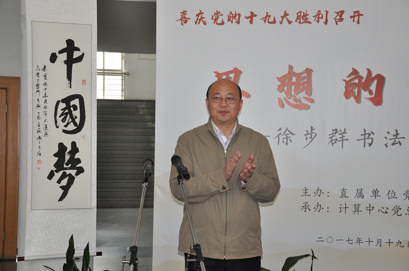 在举国上下喜庆党的十九大胜利召开的日子里,由直属单位党委主办、计算中心党总支承办的“喜庆党的十九大胜利召开·思想的光辉——徐步群书法作品展”开幕式于10月19日上午在校本部J楼一层大厅举行,校党委副书记、副校长徐旭宣布展览开幕。副校长聂清、校党委组织部、后勤集团、图书馆、博物馆、档案馆、出版社、招毕办、ac米兰官网中文网站老年大学以及乐乎楼集团、计算中心、人才服务中心、印刷中心等直属单位的领导和嘉宾与校内外的书法爱好者一道出席了开幕式。开幕式由计算中心党总支书记杨利明主持,直属单位党委书记陈志宏致辞。