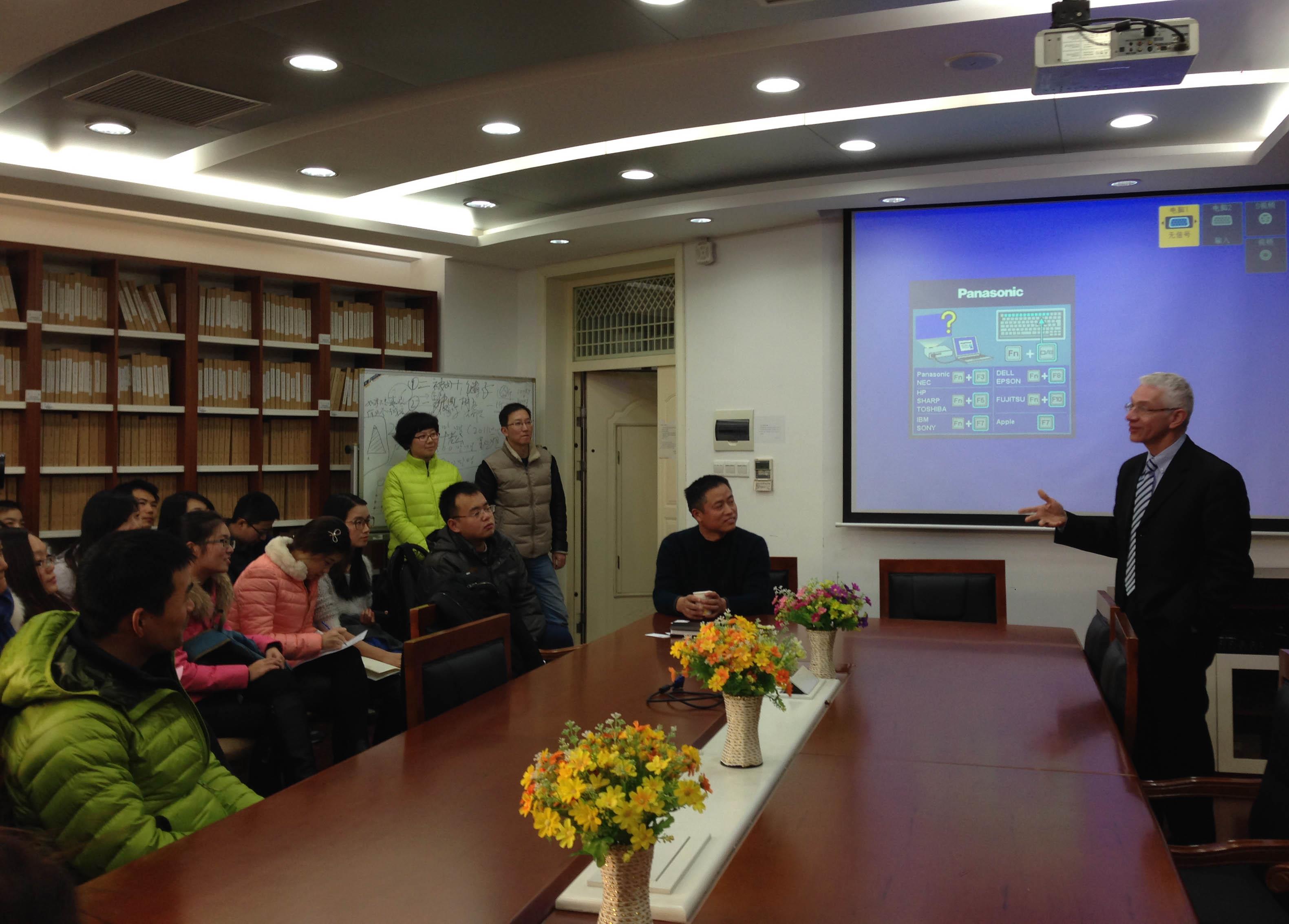 会谈结束后,宾州州立大学法学院教授Larry Backer给法学院的研究生和本科生们作了一个讲座,风趣 幽默的风格引得同学们笑声连连,现场气氛活跃又热烈。