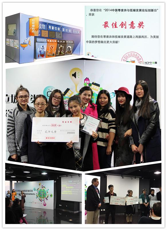 近日,应同济大学和包括中国零废弃联盟在内的多家环保组织的邀请,由本科生魏宇璇、赵春燕、王方琦和研究生杜炯熠、贺美云组成的ac米兰官网中文网站数码艺术学院团队在指导教师宋瑜的带领下,携社会公益创新作品《卡通形象“垃圾猫”的“渗透式”传播策略》参加了在同济大学举行的“2014零废弃与低碳城市发展论坛”,凭借出色的现场阐述以及观赏性与实用性兼备的创意设计,在社会创新竞赛单元一举获得“最佳设计奖”和“最佳创意奖”两项大奖。