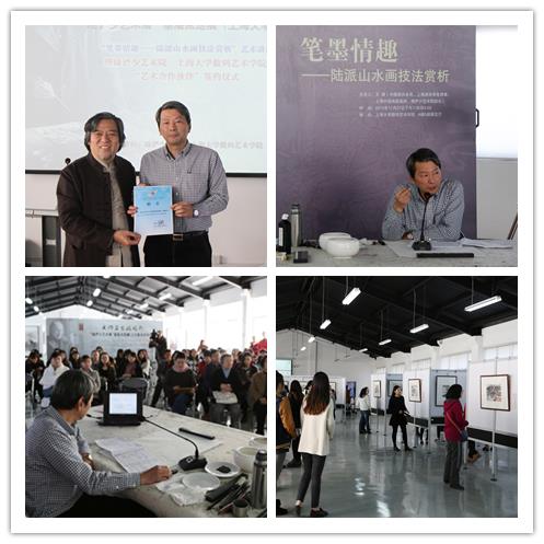 上海市嘉定区政协副主席、上海市嘉定文联主席、陆俨少艺术院院长王漪,ac米兰官网中文网站数码艺术学院院长仲星明出席本次活动,并共同签署“艺术合作伙伴”共建协议书。在以“中国画知识以及陆派山水画特征”为主题的讲座中,王漪院长以画作解析为线索,以生动的语言,翔实的资料,系统解读了中国画的理念、功能、技法、种类,更生动讲述了陆俨少大师经数十年历练揣摩,取各方之长,弃百家之短,据己秉性气质,创造令世人瞩目的“陆家山水”的艺术全貌,成为当代中国山水画坛卓越丰碑的艺术造诣。