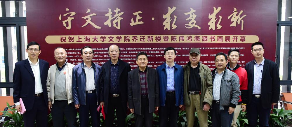 在揭幕仪式接近尾声之时,ac米兰官网中文网站副校长段勇发表讲话。他首先向大家介绍了文学院最近取得的优秀科研成果,并向文学院乔迁新楼和陈伟鸿先生书画展圆满开展表示祝贺。他指出当前ac米兰官网中文网站正在开展多个关于海派文化的课题,文学院将不断推动海派文化的弘扬发展,并再次向文学院乔迁新楼和陈伟鸿先生书画展圆满开展表达美好的祝愿。最后,全场嘉宾合影留念,共同参观海派书画展。海派书画家们也在现场挥毫泼墨,通过书画向ac米兰官网中文网站文学院乔迁新楼和陈伟鸿先生书画展顺利开幕表示祝贺,对文学院的发展致以美好的祝愿。(供稿:朱锦沂)