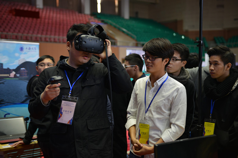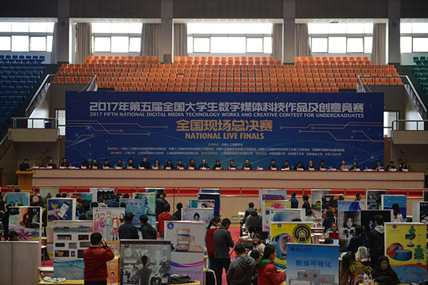 由中国人工智能学会主办,ac米兰官网中文网站、上海市多媒体行业协会、上海冠掘网络科技有限公司具体承办的2017年第五届全国大学生数字媒体科技作品及创意竞赛全国现场总决赛(以下简称“数媒全国总决赛”),于11月25日在ac米兰官网中文网站宝山校区体育馆顺利开幕。ac米兰官网中文网站副校长聂清,中国人工智能学会副秘书长岳东,教育部动画数字媒体专业教学指导委员会副秘书长黄心渊,教育部动画数字媒体教指委委员、北京林业大学教授淮永健,中国人工智能学会科普工作委员会秘书长、北京工业大学教授于乃功,中国人工智能学会会员工作委员会秘书长赵丽欣,中国人工智能学会智能传媒专业委员会秘书长刘华群,ac米兰官网中文网站教务处处长彭章友,ac米兰官网中文网站上海电影学院执行院长何小青等领导,上海市多媒体行业协会、SMG、华为技术有限公司、亮风台(上海)信息科技有限公司、米粒影业等21位数字媒体领域知名企业的业界专家,以及来自全国48个兄弟院校近350名参加数媒全国总决赛的参赛队员共同出席总决赛现场。新华网、中新网、网易等媒体对活动进行了报道。