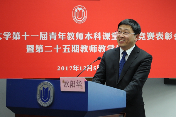 校党委常委、副校长、工会主席欧阳华向获奖教师表示祝贺,他强调学校非常重视青年教师的培养和成长,希望青年教师在未来的工作中取得更大的成绩,并鼓励青年教师勇于创新教育教学改革,增强教书育人的积极性和主动性。考评办副主任辛明军介绍了本届青年教师教学竞赛情况。教务处副处长顾晓英宣读了《表彰决定》。大会表彰了一、二等奖各3名、三等奖6名、鼓励奖7名和优秀组织奖5个。