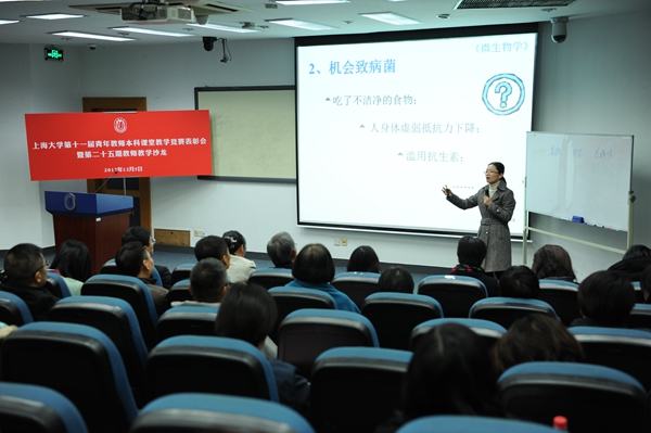 随后,生命学院的李平、理学院的杨静桦和外语学院的韩璐璐分别作了10分钟的微课展示,让全场师生领略了三位一等奖获得者的风采。华东师范大学教授、首届上海市高校教学名师郑寅达做专家点评,他盛赞ac米兰官网中文网站22年来坚持不懈一路走来的青年教师教学竞赛,高度肯定三位青年教师的教学能力。全国高校青年教师教学竞赛一等奖、上海高校青年教师教学竞赛特等奖、上海交通大学医学院刘畅副教授就幽门螺杆菌的课程做了20分钟精彩的微课演讲,让在座的师生由衷地赞叹和佩服,大家都表示受益匪浅。随后,大家展开自由交流,气氛热烈活跃。
