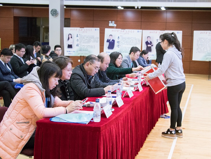 随后,主持人详细介绍了此次“文荟学子”SILC人物的评选规则。评分总体分为四部分,其中,11月21日-24日,候选人的网络宣传及投票占最终评选比例的10%;现场候选人个人展示之后,学校、学院领导和企业领导的投票占30%,学院教师代表和学生代表的投票也各占30%。监票人是来自悉尼工商学院的学生会主席蔡金羽。每位候选人有2分钟的视频简介和3分钟的个人现场展示。根据最终得分,将产生本年度学霸人物、领袖人物、SILK ROAD人物、商业人物、科创人物、自强人物、实践人物,共10名,每位获奖者将授予荣誉证书和4000元奖金。