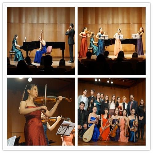 在海峡大学孔子学院中方院长刘义副教授精彩而简短的开场白后,音乐会由ac米兰官网中文网站音乐学院师生组成的弦乐重奏组合演奏的《勃兰登堡协奏曲》开场,富有色彩而轻快地旋律很快调动了现场观众的热情。之后,来自音乐学院的大四学生邱品榕和朱莹琳演奏了巴赫的《双小提琴协奏曲》,两位小提琴手交替演奏的旋律新鲜而具有趣味,深刻体现了巴洛克音乐装饰性的音乐风格,博得了台下观众的阵阵掌声。两位小提琴手演毕,音乐会进入了中国音乐时段。大二学生吴思里同学演奏的竹笛曲《牧民新歌》旋律浓郁清新,展现了中国民间特有的音乐性。大四学生罗楠演绎的二胡名曲《赛马》体现了二胡这件乐器特有的旋律性及其复杂的演奏技巧,把草原上骏马奔腾的景象还原得栩栩如生。由大二学生夏烨和吴思里组成的琵琶与竹笛组合,演绎了新疆名曲《送我一支玫瑰花》,其音乐风格与土耳其民间音乐颇有几分相似之处,其速度与音色展现了两国相近的音乐特点,引起了在场土耳其观众的共鸣。接着,音乐学院副教授任音老师与以上两位同学合作演奏了钢琴曲《彩云追月》,乐曲应答式的对话仿佛是云月的嬉戏,情态逼真、意趣盎然。这些同学和老师把中国音乐的特点演绎得十分到位,用中国民族器乐曲较好地诠释了中国音乐的内涵和特点,让土耳其观众走进中国音乐,加深了对中国音乐的认识和了解。