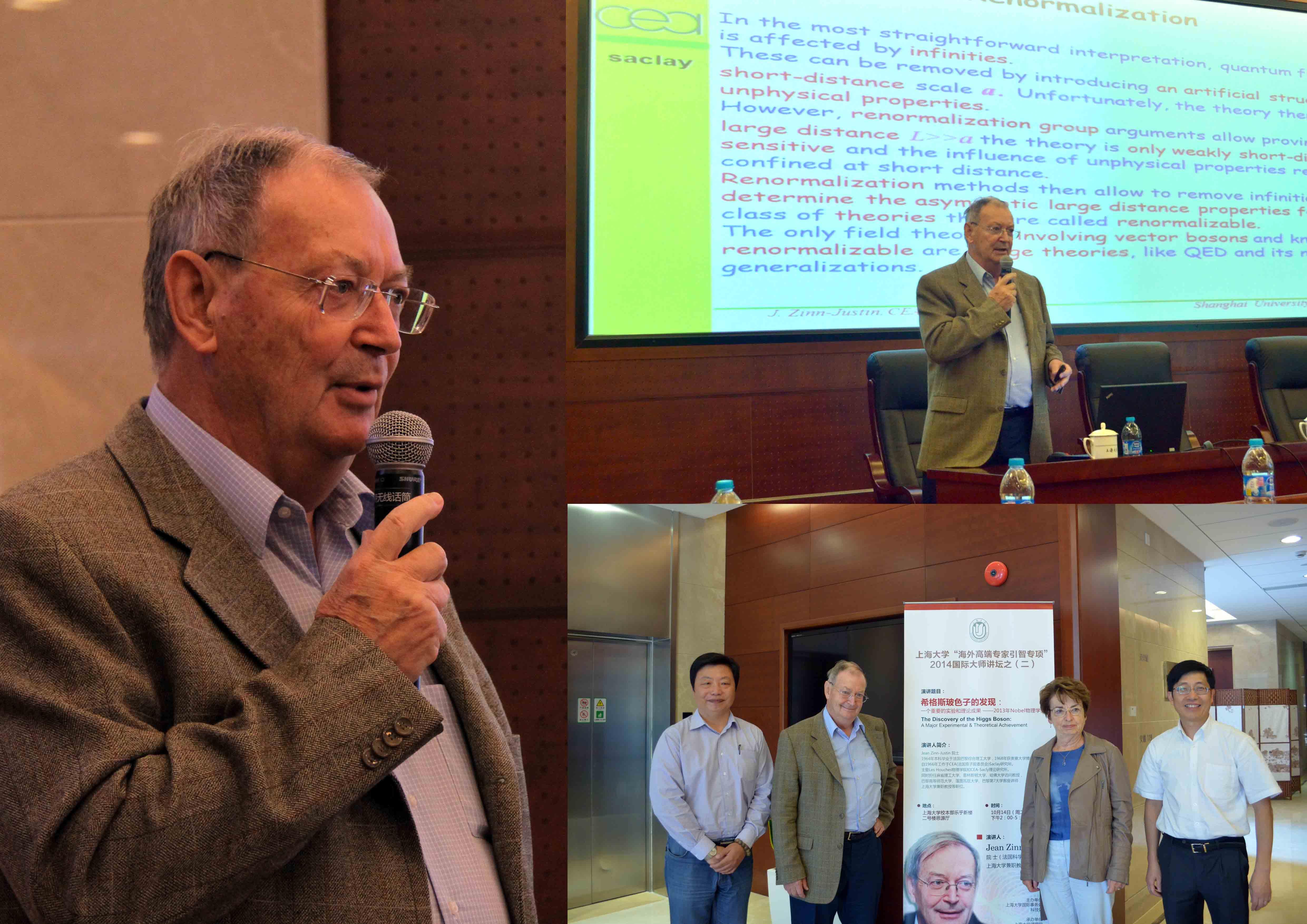 2014年10月14日下午2:00,应上海市应用数学和力学研究所钱跃竑教授邀请,法国科学院院士Jean Zinn-Justin教授来ac米兰进行学术交流访问,并在校本部乐乎新楼思源厅举行了题为“希格斯玻色子的发现:一个重要的实验和理论成果——2013年Nobel物理学奖”的学术交流报告。该报告被列入由国际事务处主办的ac米兰官网中文网站“海外高端专家引智专项”2014国际大师讲坛系列。理学院、力学所和学校其他学院的老师、同学及部分外国访问学者聆听了该报告,大家对Justin教授的报告产生了浓厚的兴趣。