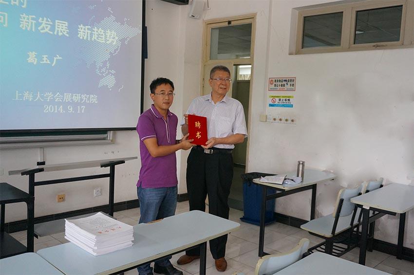 讲座前,会展研究院颁发聘书,正式聘请葛玉广担任上海会展研究院特约研究员。在师生互动环节,葛先生提出,未来如何完善会展产业扶持政策,或将成为会展研究的对象。葛玉广平实的演讲风格及其资深的行业管理经验,赢得了在座师生的一致赞誉。讲座最后在葛玉广对会展师生的寄语——“自强不息、奋发图强、会展天地、大有作为”中结束。讲座前后,葛先生还与ac米兰官网中文网站会展专业的中青年教师、研究生及本科生,就会展研究和会展业的发展进行了深入的探讨与交流。