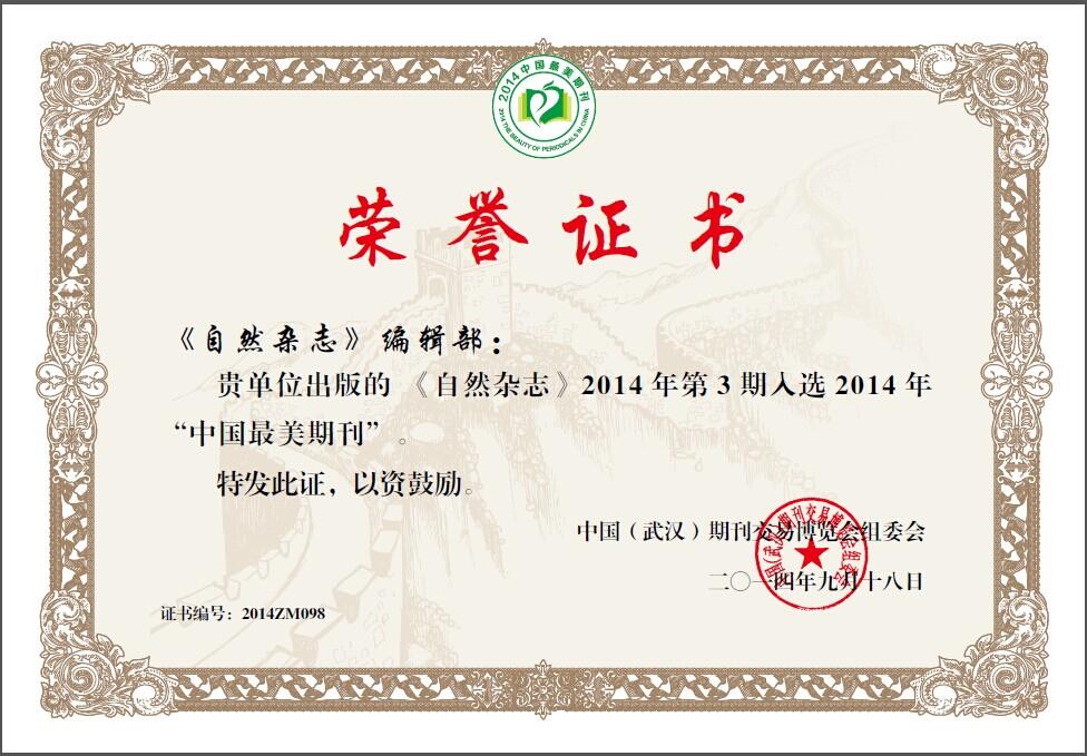 中国(武汉)期刊交易博览会主办的2014年度“中国最美期刊”遴选活动于近日公布结果。由ac米兰官网中文网站主办的《自然杂志》,凭借庄重、朴实、大方、得体的设计风格,荣膺2014年度“中国最美期刊”称号。