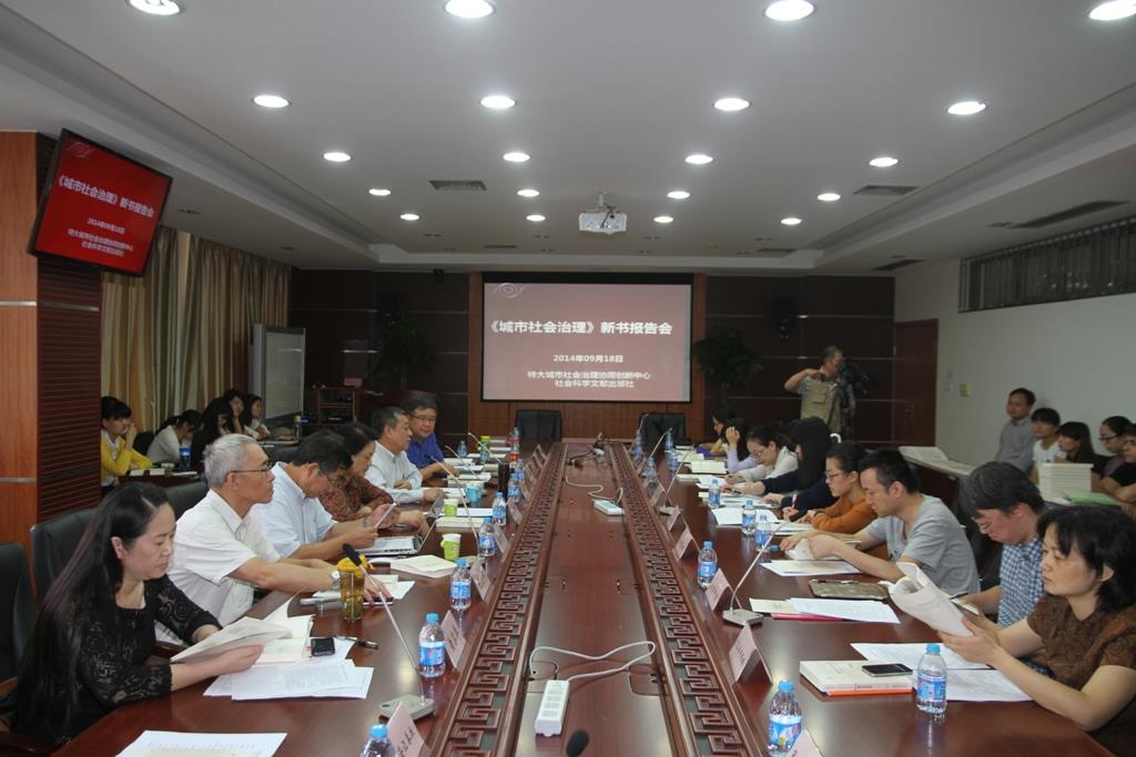 《城市社会治理》新书报告会于2014年09月18日下午2点在ac米兰官网中文网站宝山校区B417室召开。中国社会学会秘书长、社会科学文献出版社社长谢寿光,中国社会学会副会长、ac米兰官网中文网站党委副书记、副校长李友梅,特大城市社会治理协同创新中心有关人员,新书作者以及16余家新闻媒体记者参加了会议。