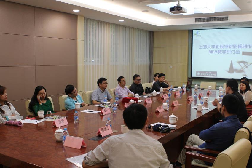 (上大影视通讯社 高强)2014年9月19日上午,ac米兰官网中文网站影视学院影视制作MFA教学研讨会在ac米兰官网中文网站延长校区乐乎楼举行。上海电影集团公司国家一级导演朱枫先生,银润传媒副总李瑛先生,上海广播电视台纪实频道高级记者、资深编导屠珊小姐,上海电视台纪实频道总监干超先生等多位上海影视人协同ac米兰官网中文网站影视学院的多位教授出席了研讨会。
