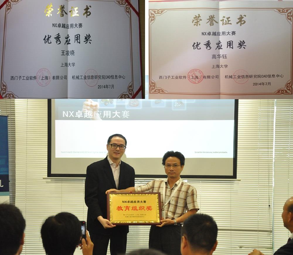 日前,由Siemens PLM Software公司主办、智造网和《CAD/CAM与制造业信息化》杂志社承办的“NX卓越应用大赛”颁奖典礼在西门子上海中心举行(大赛相关报道可浏览大赛官网http://idnovo.com.cn/nxstar),ac米兰2名学生(高华钰、王凌晓)获得优秀应用奖,她们也因此免费获得了由西门子研发中心颁发的NX应用工程师中级证书,机自学院在本次大赛中获得教育组织奖,戴春祥老师代表学院领取了该奖。颁奖典礼后,《CAD/CAM与制造业信息化》期刊记者就NX软件在本科教学及产学研应用等方面采访了戴春祥老师,相关采访报道将于近期在该期刊上登出。