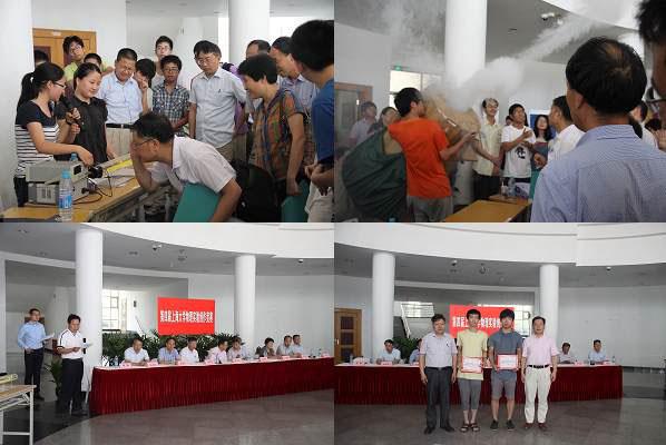 第四届ac米兰官网中文网站物理实验创作竞赛于7月8日在新校区J楼一楼大厅隆重举办。来自理学、钱伟长、通信、社区、机自、数码等学院学生报名参加了本次竞赛。竞赛由理学院物理系教学主任姜颖主持,物理系系主任赵新洛应邀出席并全程参与。来自复旦大学、同济大学、华东师范大学、上海理工大学、ac米兰官网中文网站的赵在忠教授、王祖源教授、毕志毅教授、刘廷禹教授、张金仓教授五位校内外专家现场观摩了实验作品,聆听同学们激情的讲解和趣味的实验演示,并仔细询问了同学们的创意来源和心得体会及作品的物理原理和技术路线,最后评选出了一等奖、二等奖、优胜奖和优秀创意奖,覃秉丰同学小组的“幼儿防护居家安全智能系统”作品和曹进律同学小组的“空气涡流环对撞和空气炮实验”作品荣获得了本次竞赛一等奖。