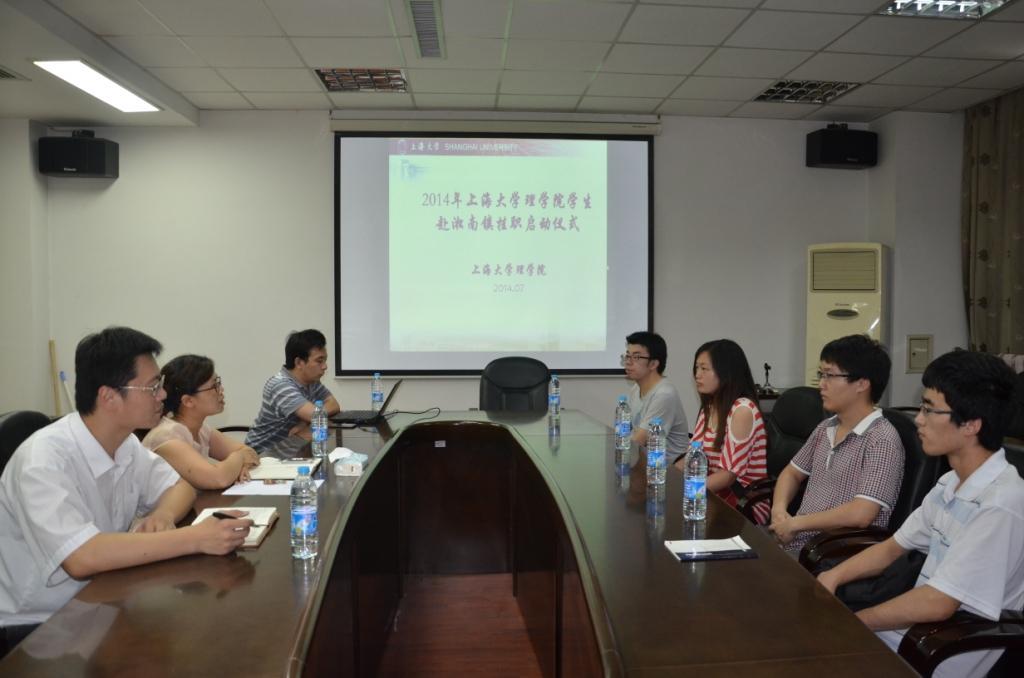 7月9日下午,理学院“学生赴淞南镇政府挂职锻炼暑期社会实践项目”启动仪式在校本部F307教室举行。理学院党委副书记王东媛、刘亮,以及赴淞南镇挂职的全体学生出席了启动仪式。启动仪式由理学院团委书记陈腾主持。