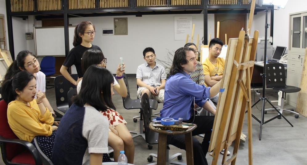5月27日,美国纽约艺术学院Dan Thompson教授以及4位研究生来我院参加一年一度的互访交流学习。初到ac米兰官网中文网站,来访学生们对美丽而灵动、文化气息浓厚的校园赞叹不已。