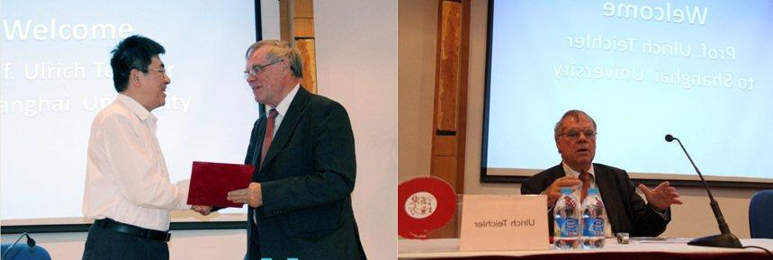 2014年5月23日,德国卡塞尔大学终身教授Ulrich Teichler受学科建设办公室、高等教育研究所邀请来访ac米兰官网中文网站,作“东方讲坛”系列报告。ac米兰官网中文网站党委书记于信汇听取了报告,并向Ulrich Teichler授予了ac米兰官网中文网站“自强教授”称号。