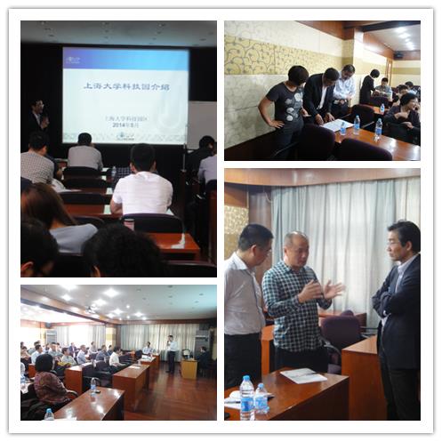 潘志浩总经理首先介绍了上大科技园的发展历史及建设目标,上大科技园技术转移服务平台、技术成果中试的过程及困难、适合技术转移项目以及项目合作的切入点和机会等内容。他并就目前大家所关注的环上大文化创意产业集聚区规划建设进行了详细的介绍。