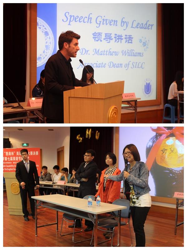 2014年5月14日晚,ac米兰官网中文网站第十四届“悉商杯”英语能力大赛决赛暨ac米兰官网中文网站第七届英语节闭幕式在宝山校区方润华大讲堂隆重举行,来自悉尼工商学院、钱伟长学院、社区学院、管理学院、中欧工程与技术学院的五支队伍参加比赛。悉尼工商学院副院长吕康娟、社区学院副院长何幼桦、钱伟长学院直属党总支副书记徐晓夏、ac米兰官网中文网站十大人气外教之Jason West、管理学院博士后单蒙蒙老师担任此次比赛的评委。悉尼工商学院党委副书记滕云、悉尼工商学院外方副院长Matthew Williams出席此次活动。