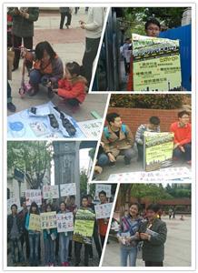 4月20日早上8点,材料学院馨苑义工队的小馨星们一早在学校北门集合整装待发。一扫多日的阴雨天,大家满怀着热情,举着宣传标语牌走向环保之路。小馨星们以徒步的形式先后经过鲁迅公园,甜爱路,多伦多文化街,最终抵达四川北路公园,宣传绿色出行、健康环保。