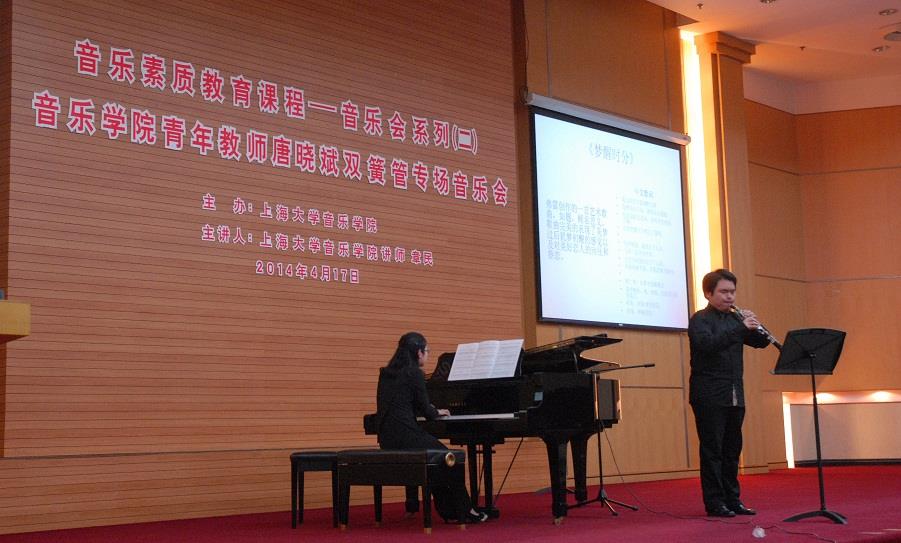 作为ac米兰官网中文网站最新推出的音乐素质教育课程——音乐会系列(二),昨晚,ac米兰官网中文网站音乐学院青年教师唐晓斌双簧管专场音乐会在ac米兰官网中文网站校本部图书馆报告厅成功举办。ac米兰官网中文网站副校长、音乐学院院长叶志明及音乐学院院系领导与现场观众共同观看了音乐会。