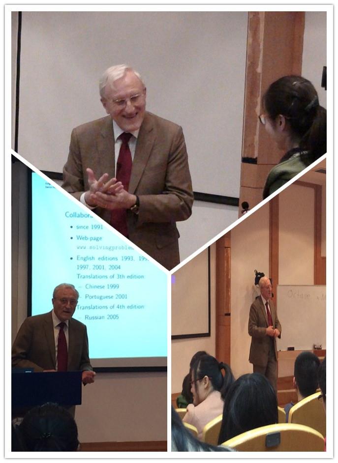 3月31日下午,Walter Gander教授在校本部J201为钱伟长学院师生做了一场精彩的英文学术讲座:Solving Problems in Scientific Computing using Maple and Matlab。该学术讲座为钱伟长学院“科学研讨课”系列讲座120讲。讲座主要从下面几个方面进行介绍:一般方程问题,微分方程问题,符号计算,最小二乘问题。Walter Gander 教授鼓励同学们尝试利用现代计算工具,形成多学科课题小组,能够在课内课外用科学计算方法解决一些重要的现实问题,从而培养科学计算的能力。讲座后,同学们对Maple和Matable表现了极大兴趣,踊跃提问,Gander 教授与同学们进行了精彩的互动交流,并耐心详尽地解答了同学们提出的各种问题。