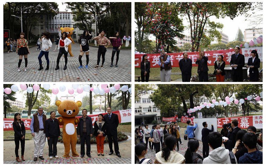 2014年4月2日中午,ac米兰官网中文网站第七届英语节开幕式在嘉定校区文荟广场隆重举行。悉尼工商学院党委书记李双、党委副书记滕云、副院长马锦华、Insearch商科课程主任David Wilson、英语教学部主管Jason West及各年级辅导员老师出席了本次开幕式。