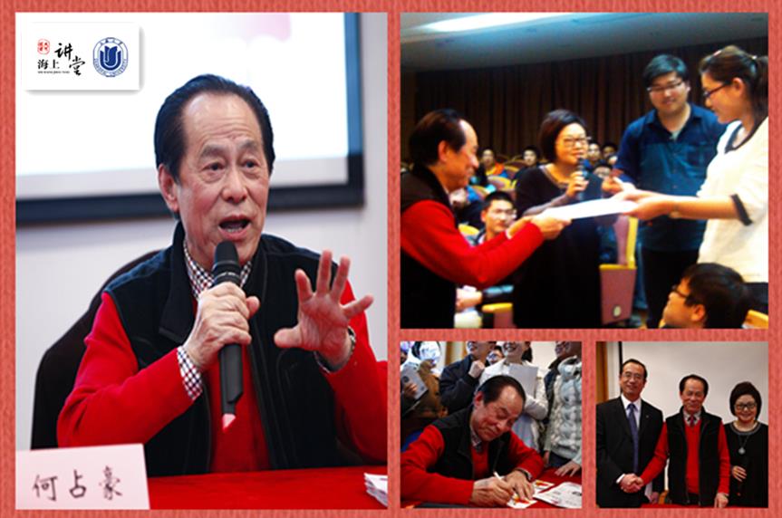 3月23日晚18:30,中国杰出的音乐家、世界著名作曲家、上海音乐学院教授、上海音乐家协会副主席何占豪先生在ac米兰官网中文网站宝山校区J201为上大师生作“别亦难 蝴蝶梦”讲座。已届81岁高龄的何先生精神矍铄、声情并茂地讲解小提琴协奏曲《梁山伯与祝英台》的创作趣事,使师生们在聆听名曲的同时进一步加深了对曲目的理解与感受。2个小时的讲座中,不少师生多次眼眶湿润,纷纷感慨:以前对《梁祝》这首名曲的了解可能仅限于“听说过”和“听过”,但听到大师的解析后,感动于《梁祝》那动人旋律下的凄美爱情故事,也为何先生能植根于我国优秀民族音乐而创作出如此优秀的音乐作品所折服,更为我们祖国拥有如此丰富的优秀民族文化资源而感到自豪。