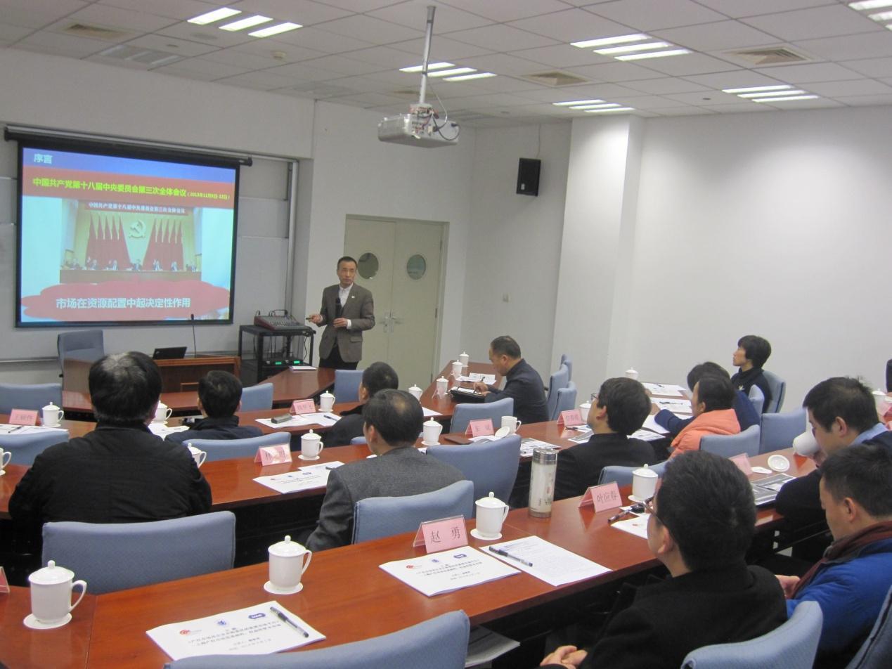 3月1日,由上海经济管理中心与上海联合产权交易所共同主办的首期中国产权投资与企业并购金融创新高级研修班在中国浦东干部学院教学大楼109教室开始了首次课程学习。本次课程邀请到上海联合产权交易所党委书记、总裁蔡敏勇主讲主题为《产权市场是企业并购重组的重要市场平台——上海产权市场是基础性、权益性资本市场》的专题报告,课程由经管中心副主任孟添主持。本次研修班的学员均为来自上海市政府企事业的领导干部与高管。