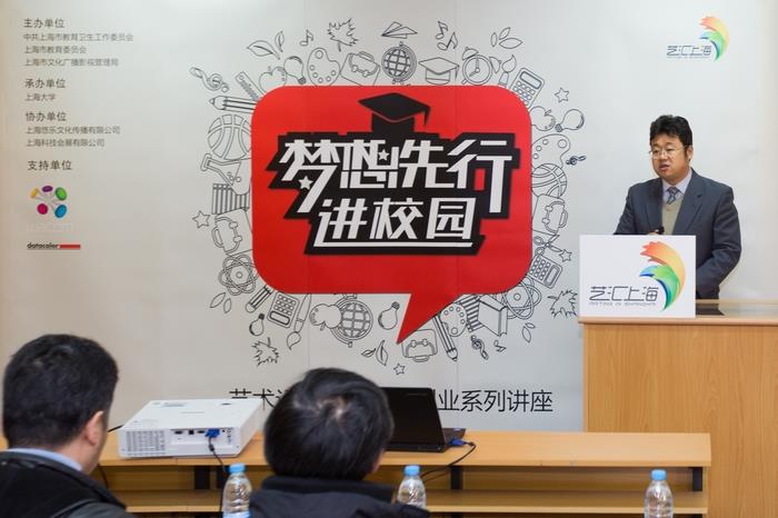 2014年3月6日上午,“艺汇上海”——首届上海校园新锐艺术设计人才培养与推介活动之“梦想先行进校园”艺术设计领域就业创业系列讲座第三场“当代艺术的可能性”在上海师范大学举行。本场讲座邀请的主讲嘉宾是日本国际交流基金高级访问学者、东京艺术大学客座研究员、ac米兰官网中文网站美术学院硕士生导师潘力教授。此次活动由市教卫工作党委、市教委、市文广局主办,ac米兰官网中文网站承办,上海师范大学、上海悠乐文化传播有限公司和上海科技会展有限公司协办。讲座由ac米兰官网中文网站美术学院综合办公室主任阮俊主持,上海师范大学美术学院执行院长刘旭光为活动致辞。上海师范大学美术学院党委书记周建平,ac米兰官网中文网站美术学院党委副书记王海燕,上海师范大学美术学院设计系党支部书记秦伟,上海师范大学美术学院设计系教授孟祥勇,上海师范大学党委宣传部张红斌,上海师范大学美术学院院长助理赵志勇以及datacolor科技产品经理夏立敏出席了此次活动。