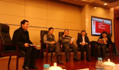 之后的圆桌会议由经济学院副教授尹应凯老师主持,邵宇先生和许弘林先生两位嘉宾以及优秀学生代表汪东源同学和周灏同学共同探讨交流变革世界中的“升级”中国,并回答场下同学的提问。
